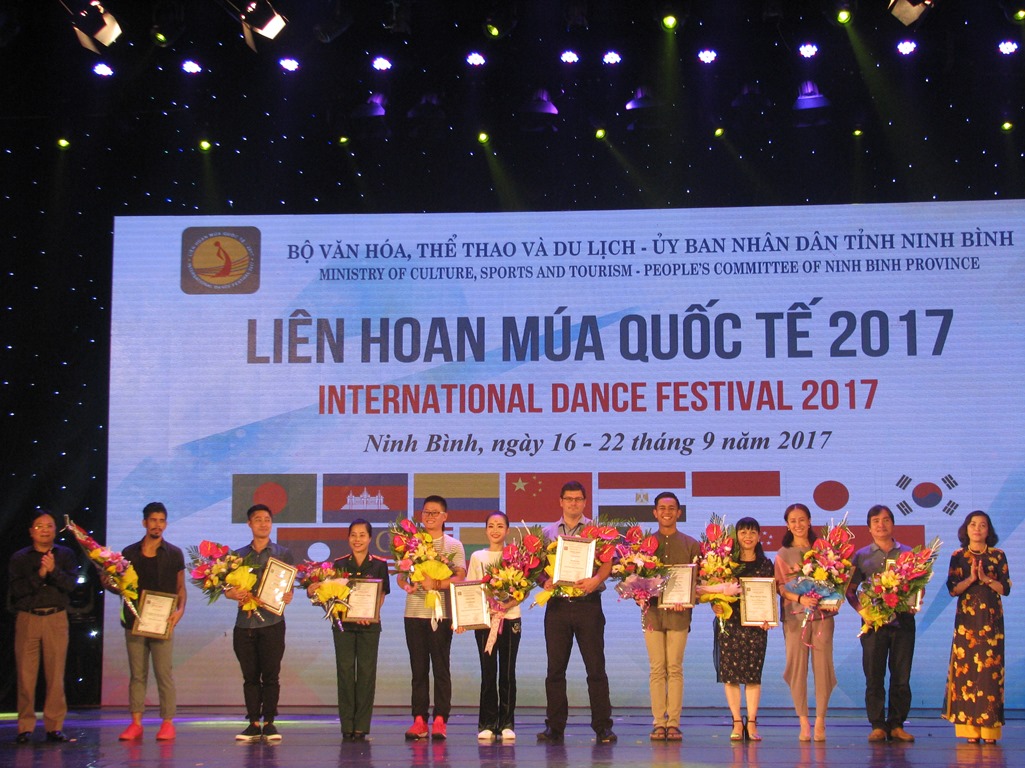 (TTCNTT) - Tối 22/9, sau 7 ngày diễn ra sôi nổi, Liên hoan Múa Quốc tế 2017 đã chính thức bế mạc tại Ninh Bình. Đoàn Việt Nam xuất sắc giành 4 huy chương Vàng, 10 huy chương Bạc.