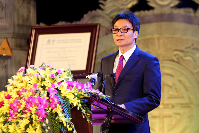 “Niềm vinh dự và trách nhiệm ấy không chỉ của Nhà nước, của các cơ quan, tổ chức mà đặc biệt quan trọng là của cộng đồng người dân, những người từ nhiều đời đã và đang tiếp tục sáng tạo, gìn giữ, thực hành, trao truyền lại cho các thế hệ mai sau”, Phó Thủ tướng Vũ Đức Đam nói.