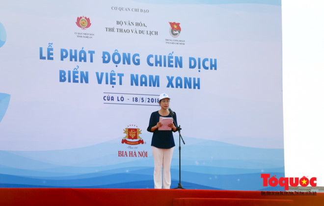 Thứ trưởng Bộ VHTTDL Đặng Thị Bích Liên phát biểu phát động chiến dịch “Biển Việt Nam Xanh”.