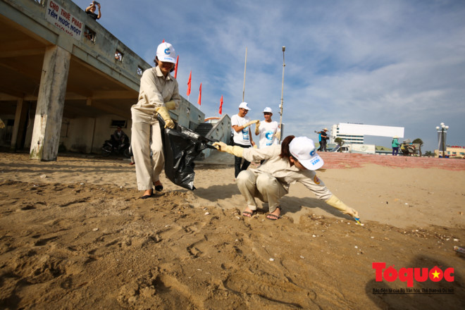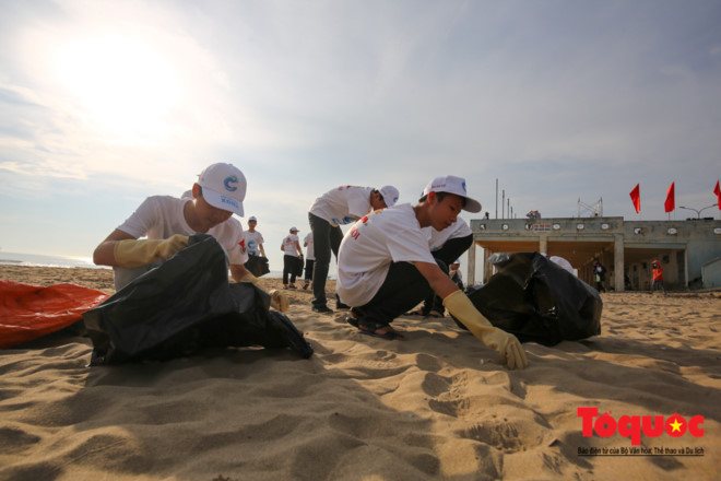 Ngay sau khi phát động, các đoàn viên, thanh niên đã cùng xuống bờ biển Của Lò để tham gia vệ sinh dọn rác.