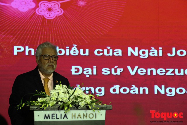 Trưởng đoàn ngoại giao tại Hà Nội, ông Jorge Rondon Uzcategui, Đại sứ nước Cộng hòa Venezuela, thay mặt đoàn ngoại giao phát biểu cảm ơn và gửi lời chúc mừng năm mới tới Bộ VHTTDL.