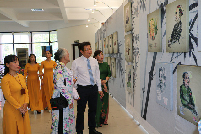 Các đại biểu tham quan triển lãm mỹ thuật Chân dung Mẹ Việt Nam Anh hùng. Nguồn: Sở VHTT Thừa Thiên Huế