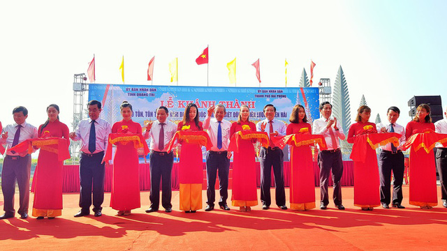 Phó Thủ tướng Trương Hòa Bình và các đại biểu cắt băng khánh thành công trình "Bảo tồn, tôn tạo bờ Nam Di tích Quốc gia đặc biệt Đôi bờ Hiền Lương-Bến Hải" (Ảnh Báo Thanh niên)