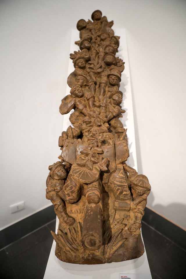 39 tác phẩm mỹ thuật giới thiệu tại triển lãm gồm các chất liệu: điêu khắc, tranh giấy, sơn mài, sơn dầu…