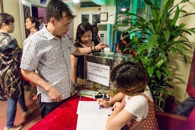 Vở kịch diễn ra đã chật kín khán giả, ngay ở cửa ra vào phòng soát vé cũng để hòm từ thiện
