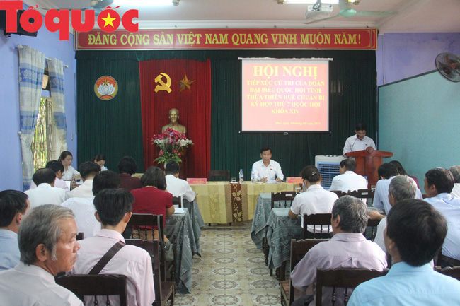 Cử tri phường Hương Long (TP Huế) gửi ý kiến lên đoàn ĐBQH. Ảnh: Lê Chung