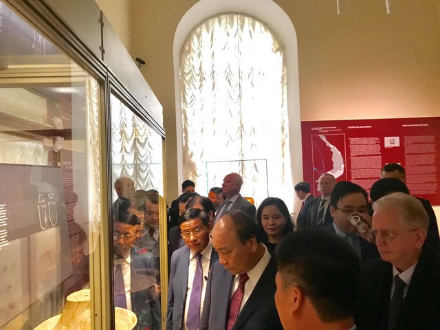 Thủ tướng Nguyễn Xuân Phúc và đoàn đại biểu cấp cao Chính phủ Việt Nam thăm triển lãm "Những nền văn hóa cổ Việt Nam" tại Nga. Nguồn: ICD