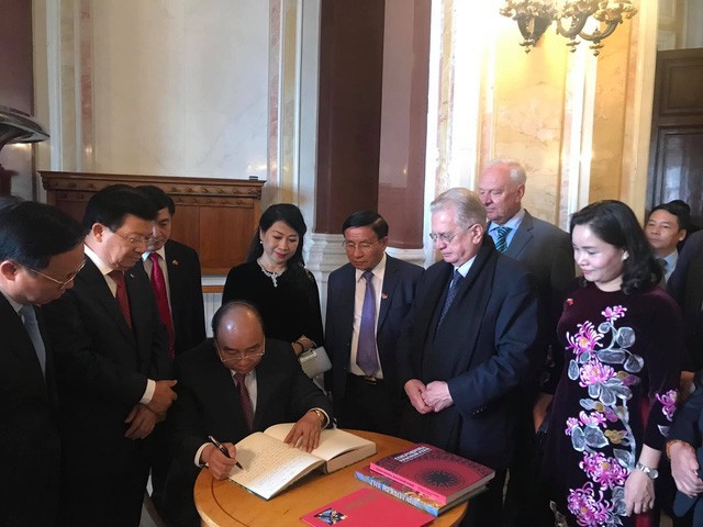 (TTCNTT) - Trong khuôn khổ chuyến thăm chính thức Liên bang Nga, sáng ngày 21/5, Thủ tướng Nguyễn Xuân Phúc cùng Phu nhân và đoàn đại biểu cấp cao Chính phủ Việt Nam đã đến thăm Triển lãm "Những nền văn hóa cổ Việt Nam" tại Bảo tàng quốc gia Hermitage, thành phố St.Petersburg, Liên bang Nga.