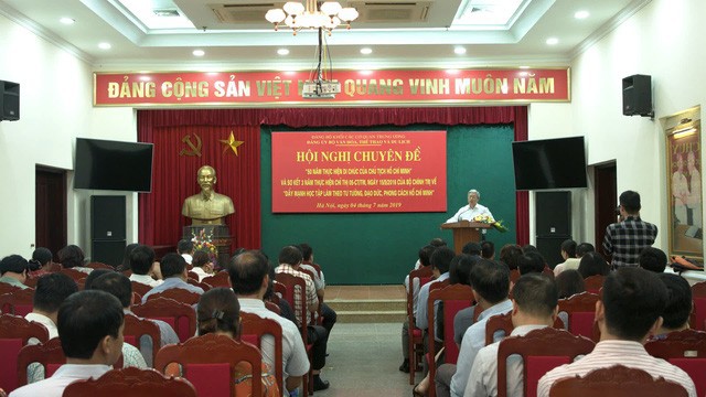 Phát biểu chỉ đạo tại Hội nghị, Trưởng ban Tuyên giáo Đảng ủy Khối các cơ quan Trung ương Vũ Đức Nam đánh giá cao các tổ chức Đảng trực thuộc Đảng ủy Bộ VHTTDL trong việc thực hiện Chỉ thị số 05-CT/TW của Bộ Chính trị về đẩy mạnh học tập và làm theo tư tưởng, đạo đức, phong cách Hồ Chí Minh và 50 năm thực hiện di chúc Chủ tịch Hồ Chí Minh trong giai đoạn 2016 - 2019. Ông Vũ Đức Nam hi vọng ngành văn hóa với tầm quan trọng của mình trong thời gian tới tiếp tục phát huy và đạt kết quả cao.