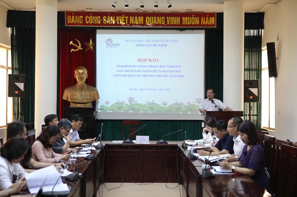(TTCNTT) - Chiều 9/7, tại Hà Nội, Tổng cục Du lịch Việt Nam đã tiến hành họp báo để thông tin về tình hình hoạt động du lịch 6 tháng đầu năm 2019, Giải thưởng Du lịch Việt Nam năm 2019 và công bố Báo cáo thường niên Du lịch Việt Nam 2018.