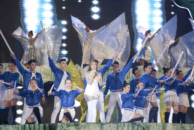 Ca sĩ Mỹ Tâm hát trong đêm khai mạc chương trình nghệ thuật lễ hội hang động Quảng Bình năm 2019.