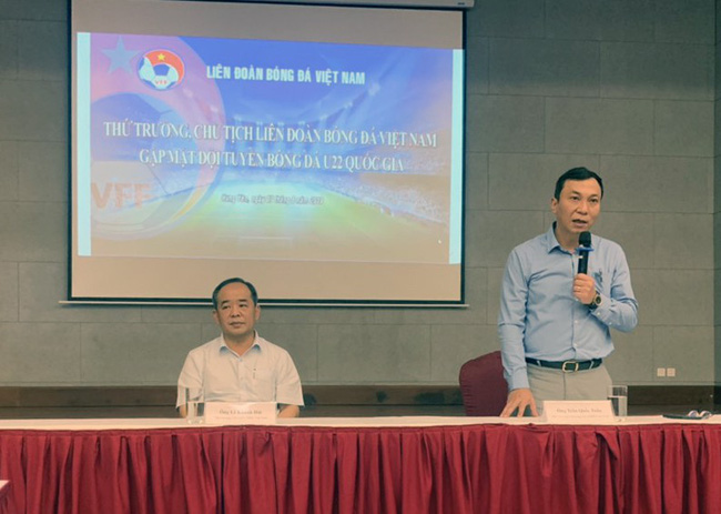 Thứ trưởng, Chủ tịch VFF Lê Khánh Hải phát biểu động viên toàn đội.