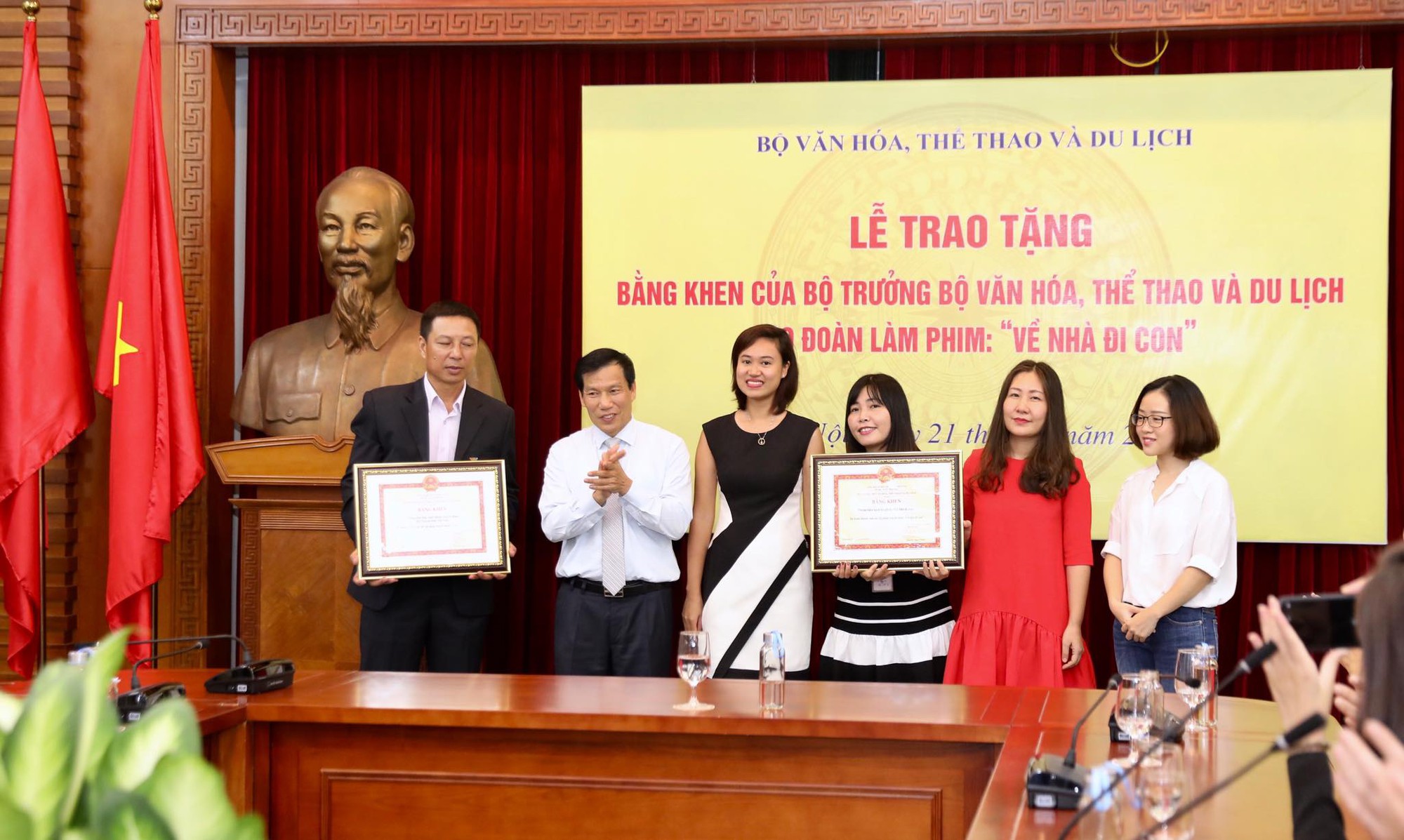 (TTCNTT) - Sáng 21/8, tại Hà Nội, Bộ Văn hóa, Thể thao và Du lịch đã tổ chức Lễ trao tặng Bằng khen của Bộ trưởng Bộ VHTTDL cho đoàn làm phim "Về nhà đi con".