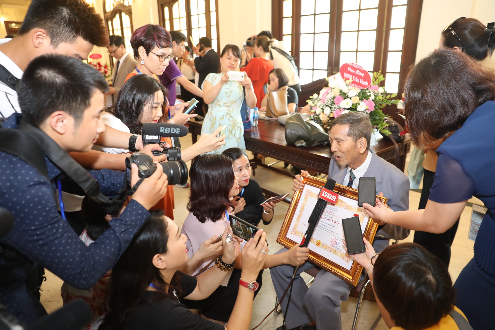 Ở tuổi 90, diễn viên, nghệ sĩ Trần Hạnh đón nhận danh hiệu NSND trong sự chia sẻ niềm vui với con cháu và khán giả yêu quý mình. "Tôi hạnh phúc vì được phong tặng danh hiệu Nghệ sĩ nhân dân nhưng đó không phải là mục đích của tôi khi làm nghề. Tôi đến với sân khấu vì tình yêu, vì sự đam mê. Mỗi khi được giao vai diễn nào, tôi đều cố gắng làm hết sức để không phụ lòng khán giả"- NSNDTrần Hạnh cho biết.