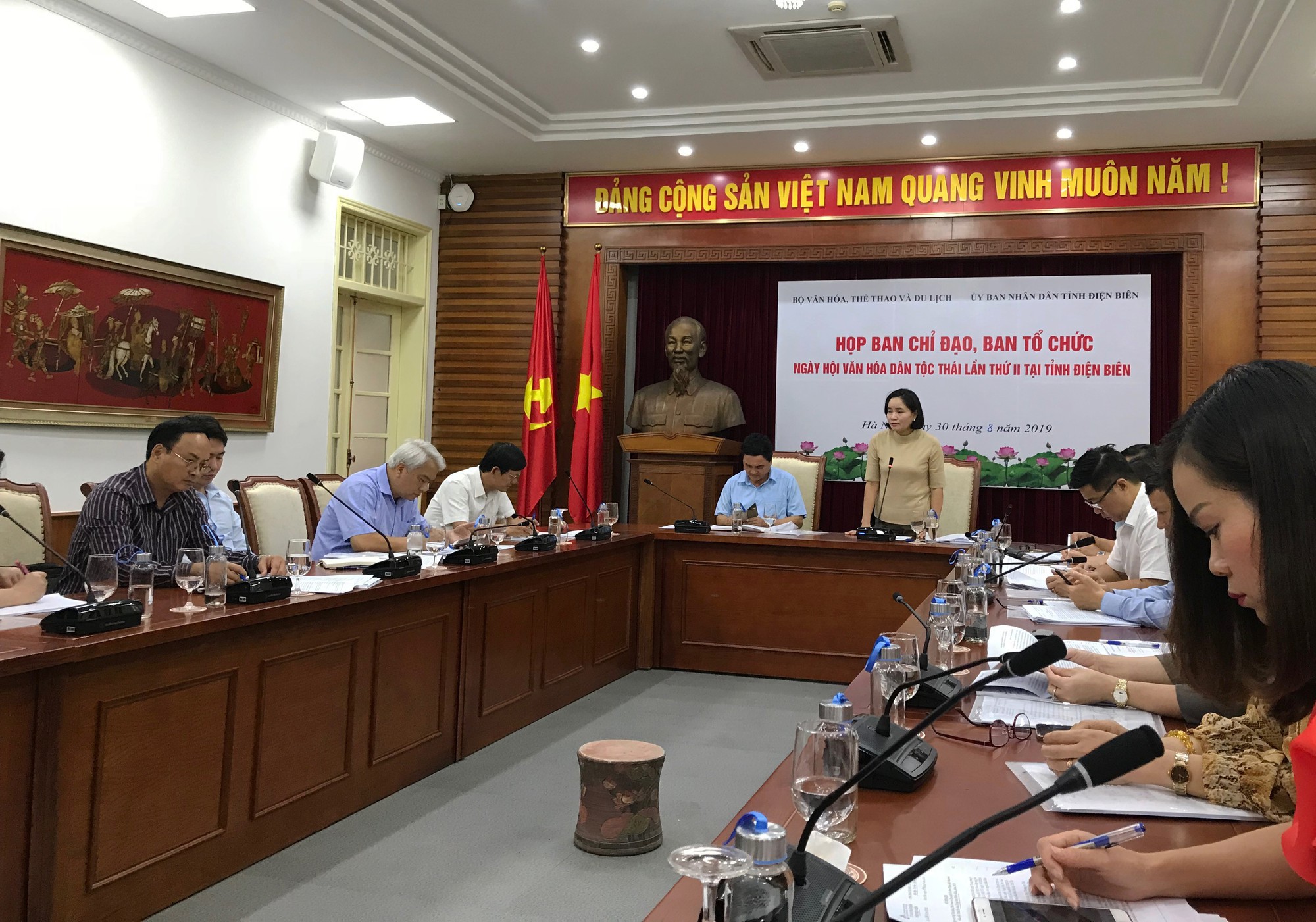 (TTCNTT) - Ngày 30/8, tại Hà Nội, Ban Chỉ đạo, Ban Tổ chức Ngày hội văn hóa dân tộc Thái lần thứ II năm 2019 đã họp bàn về công tác chuẩn bị Ngày hội. Thứ trưởng Bộ Văn hóa, Thể thao và Du lịch, Trịnh Thị Thủy- Trưởng Ban Chỉ đạo Ngày hội và ông Lê Văn Quý, Phó Chủ tịch UBND tỉnh Điện Biên, Phó Trưởng Ban Chỉ đạo Ngày hội chủ trì buổi họp.