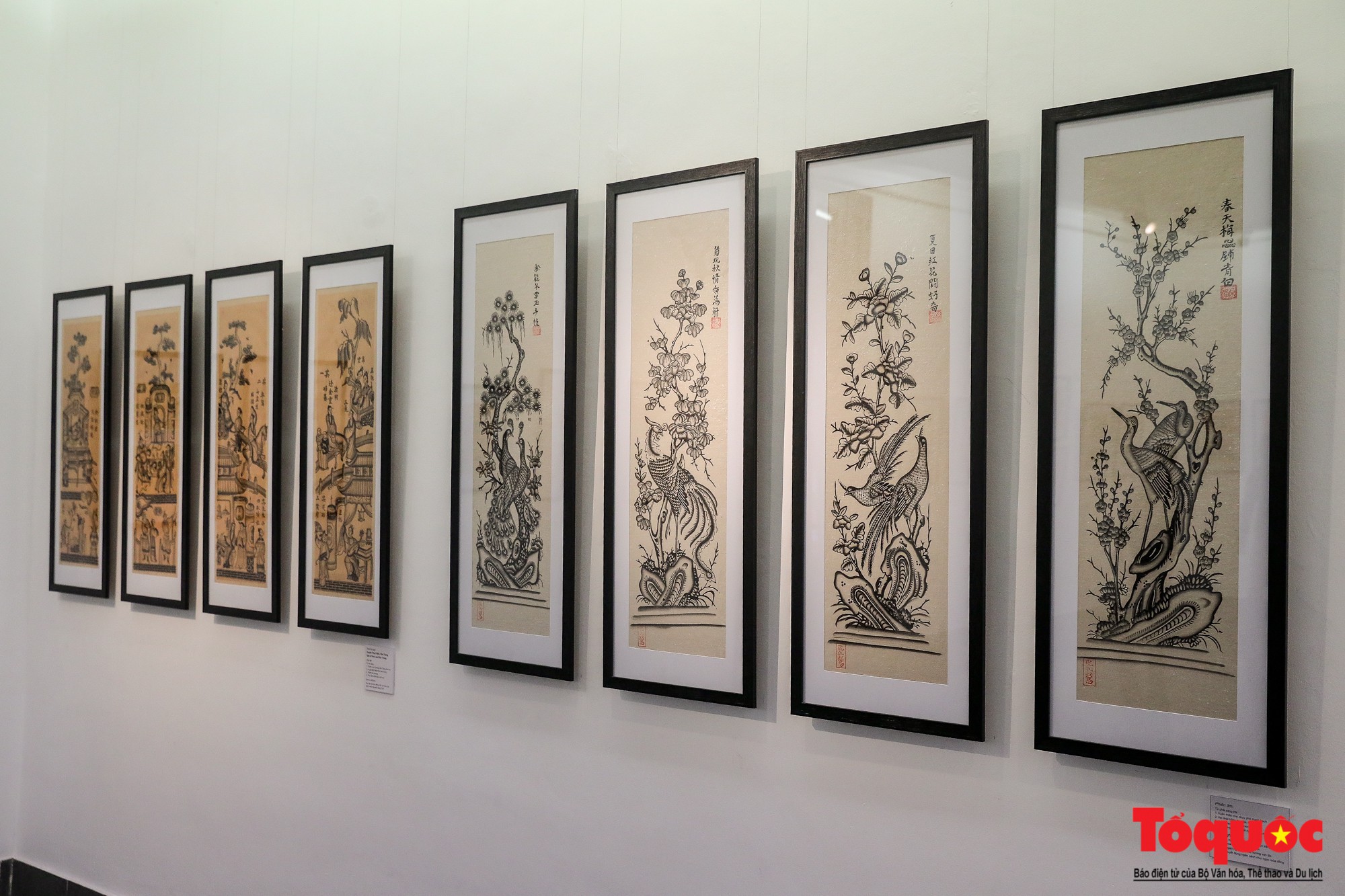 Trong đó, phòng tranh Đông Hồ xưa trưng bày một số bộ tranh in lưu giữ gần 1 thế kỷ và tranh in theo mẫu truyền thống được ưa chuộng xưa nay.
