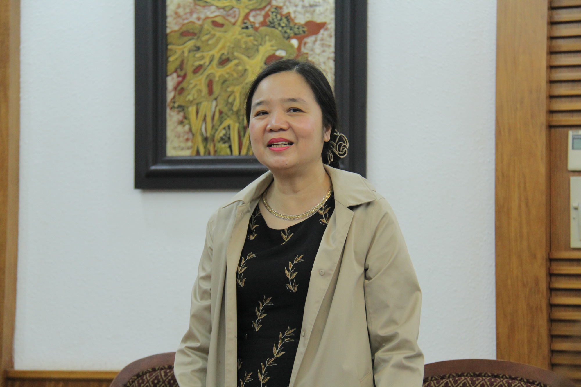 Bà Vũ Dương Thúy Ngà - Vụ trưởng Vụ Thư viện báo cáo tại Hội nghị.