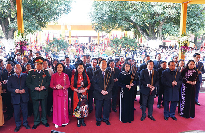 Tại buổi lễ, các đại biểu đã thành kính dâng hương, hoa và nghe đọc chúc văn tri ân công đức những nữ anh hùng đã viết nên trang sử vàng chói lọi thời kỳ đầu dựng nước và giữ nước của dân tộc. Trước đó, nghi thức rước kiệu, tế lễ được tổ chức long trọng, thu hút sự ngưỡng vọng của đông đảo công chúng và du khách, tạo nên không khí trang nghiêm song cũng không kém phần náo nức.