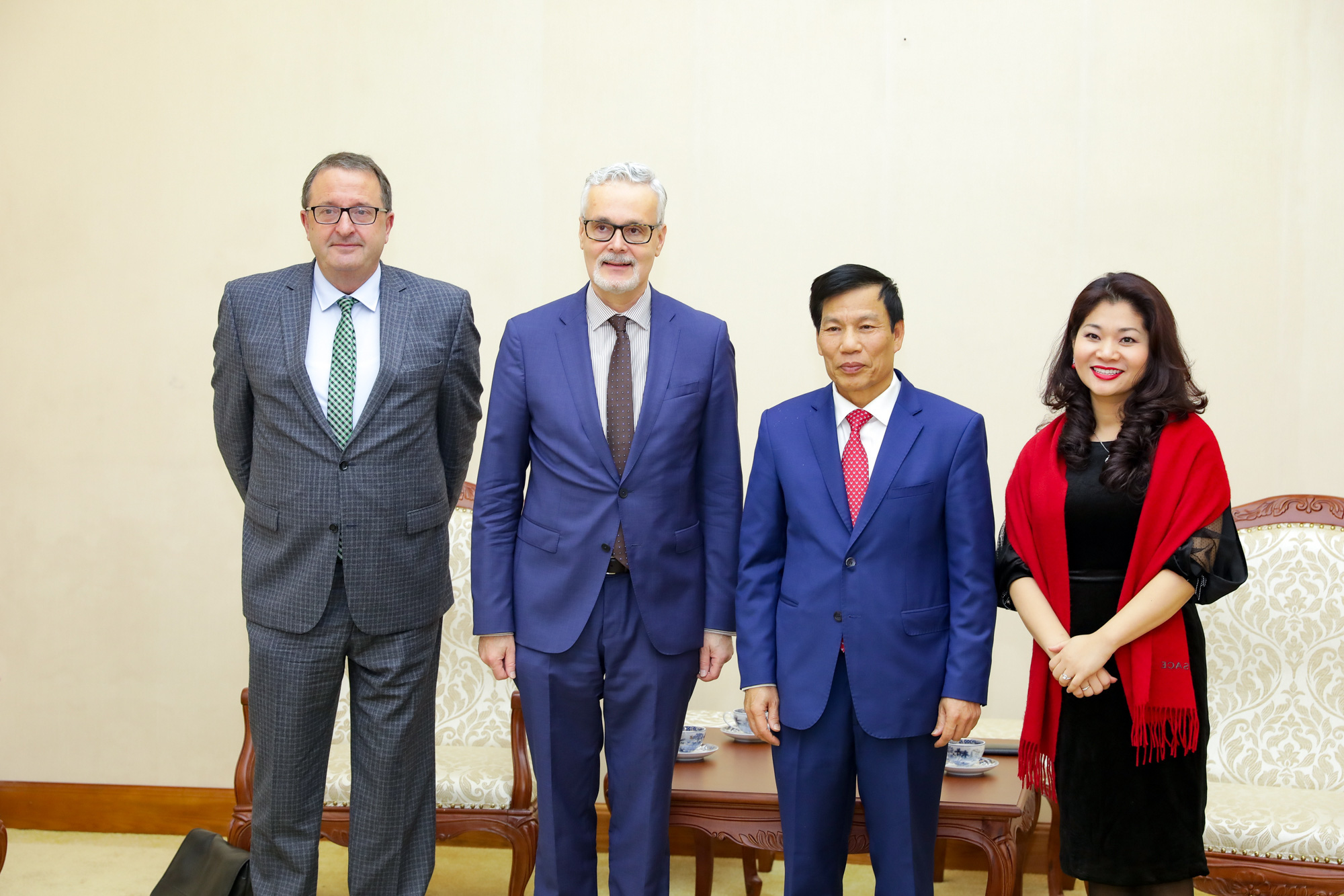Đại sứ CHLB Đức khẳng định Việt Nam – Đức đã có nhiều thành công trong hợp tác phát triển VHTTDL. Theo đó, về văn hóa, Việt Nam và Đức đã ký kết một số biên bản ghi nhớ về hợp tác văn hóa, nghệ thuật. Viện Goethe tại Hà Nội và TP.HCM cũng đang làm tốt chức năng là cầu nối hợp tác văn hóa giữa hai nước. Đặc biệt, Đại sứ cũng cho biết, năm 2020 là năm kỷ niệm 45 năm thiết lập quan hệ ngoại giao Việt Nam – Đức (1975 – 2020). Đại sứ bày tỏ mong muốn hai bên sẽ có thêm nhiều hoạt động trao đổi văn hóa nhân dịp này như các chương trình biểu diễn nghệ thuật, triển lãm mỹ thuật, nhiếp ảnh được tổ chức ở cả hai nước…
