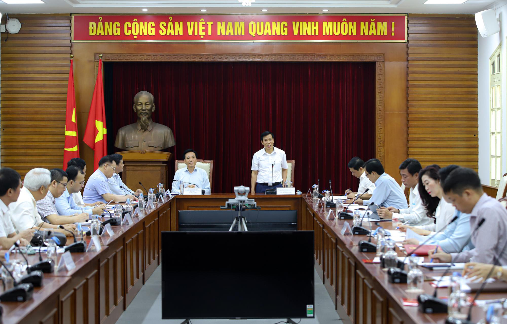 Bộ trưởng Bộ VHTTDL Nguyễn Ngọc Thiện (bên phải) tại buổi làm việc