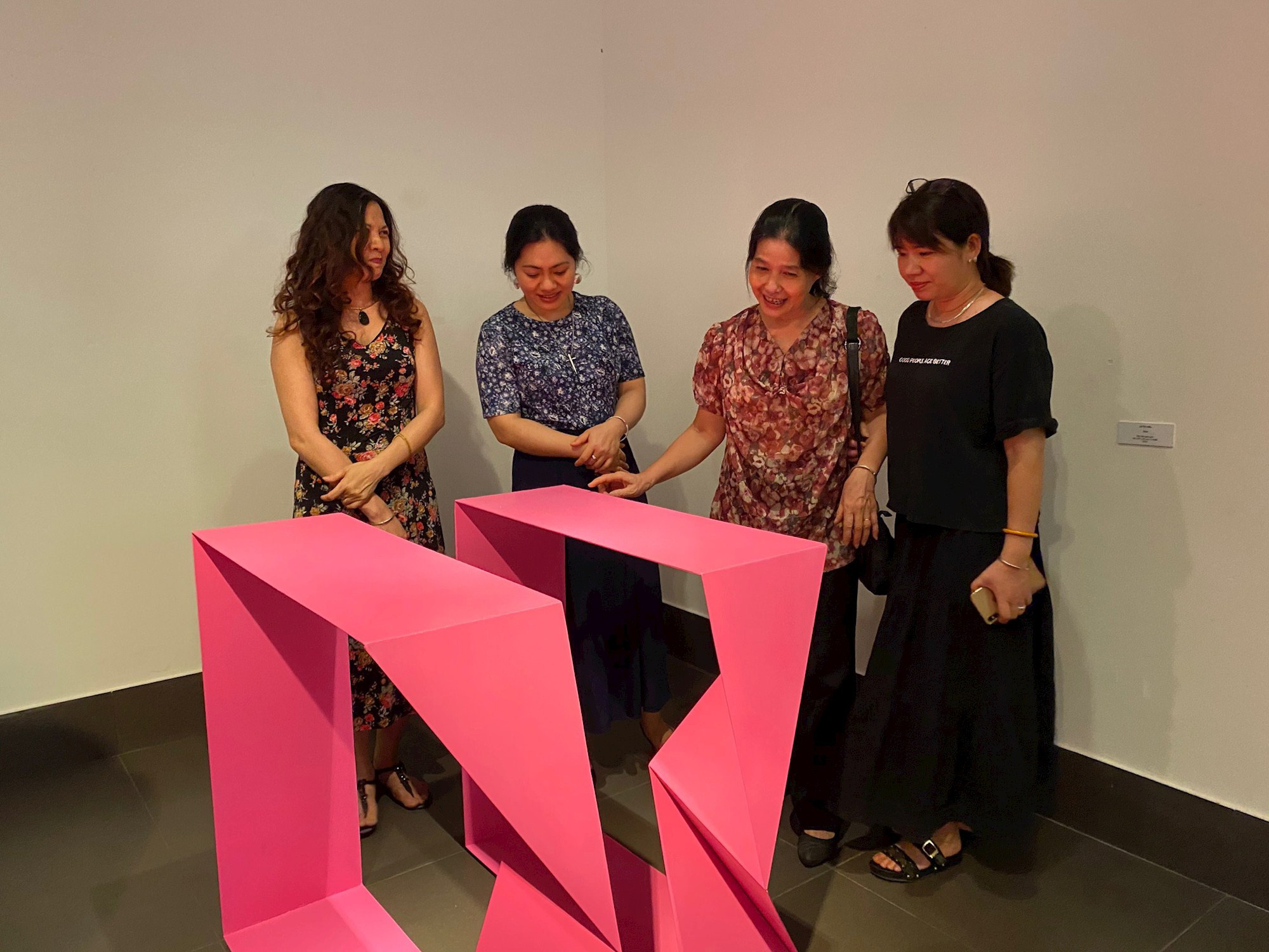 Đây là cuộc triển lãm chung của hai nữ nghệ sĩ khá nổi bật trong giới mỹ thuật đương đại, đều có hơn 30 năm theo đuổi nghệ thuật. Triển lãm gồm 6 tác phẩm điêu khắc thép của nhà điêu khắc Lê Thị Hiền và 30 tác phẩm tranh vải của họa sĩ Trần Thanh Thục.