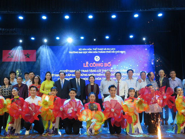 Trường Đại học Văn hóa thành phố Hồ Chí Minh đón nhận Cờ thi đua của Thủ tướng Chính phủ (ảnh: Quốc Tuấn)