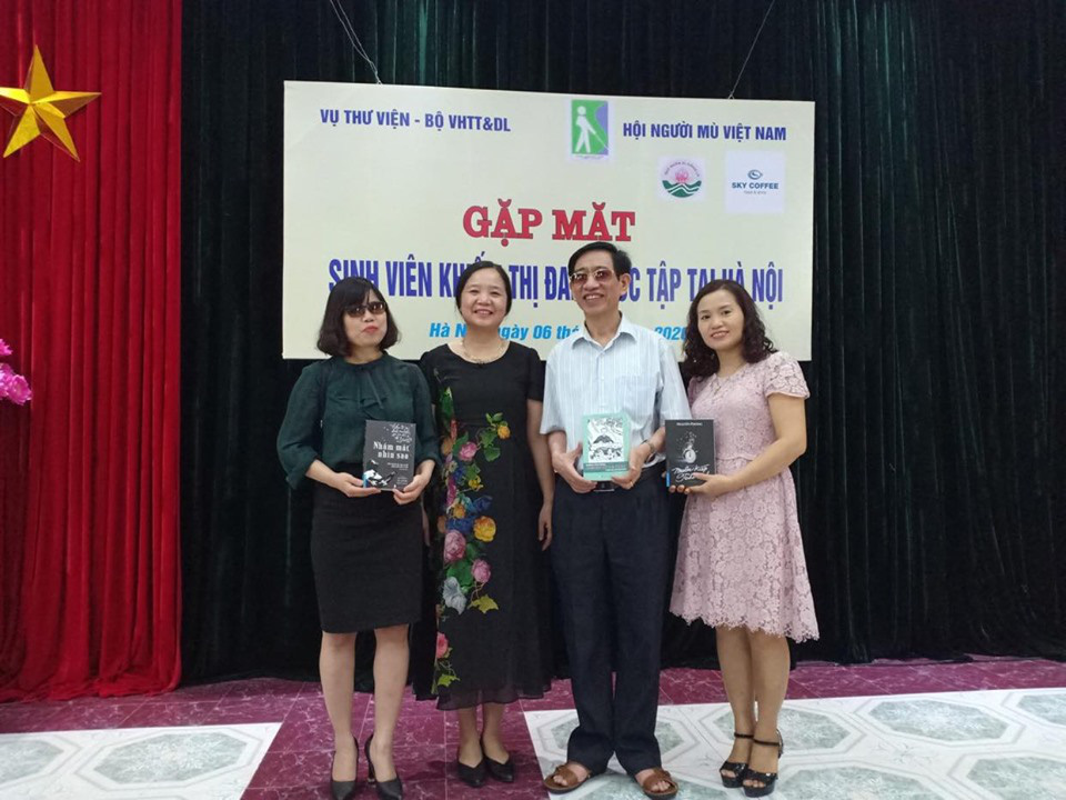 Tới dự buổi gặp mặt có sự hiện diện của ông Phạm Viết Thu - Chủ tịch Hội Người mù Việt Nam; Bà Vũ Dương Thúy Ngà - Vụ trưởng Vụ Thư viện; Đại diện Quỹ Nhân ái Hồng La Hà Tĩnh; Không gian nghệ thuật Sky Coffe; Cùng hơn 40 em sinh viên khiếm thị, sinh viên tình nguyện có hoàn cảnh mồ côi đang sống và học tập tại Hà Nội.