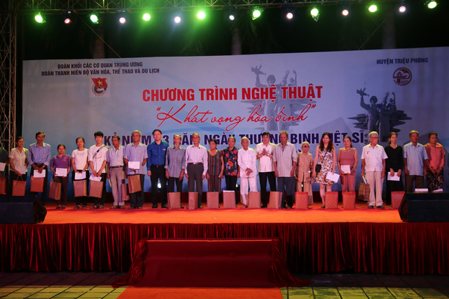 (TTCNTT) - Được sự đồng ý của Đảng ủy, Lãnh đạo Bộ Văn hóa, Thể thao và Du lịch và Đoàn Khối các cơ quan Trung ương, vào ngày 26/7 tại Quảng Trị, Đoàn Thanh niên Bộ Văn hóa, Thể thao và Du lịch (VHTTDL) phối hợp với huyện Triệu Phong đã tổ chức Chương trình nghệ thuật với chủ đề "Khát vọng hòa bình", nhân kỷ niệm 73 năm Ngày Thương binh Liệt sĩ (27/7/1947 - 27/7/2020) và chào mừng đại hội Đảng các cấp, tiến tới Đại hội lần thứ 13 của Đảng.