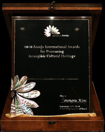 Đây là giải thưởng nhằm khuyến khích, thúc đẩy các hoạt động quảng bá, giữ gìn và bảo tồn di sản văn hóa phi vật thể dành cho tất cả các đối tượng trên khắp thế giới, do thành phố Jeonju tài trợ. Ngoài họa sĩ Vũ Đức Hiếu, hai tổ chức khác cũng được trao giải thưởng này là ASAMA (Bukina Faso) trong lĩnh vực nghề thủ công truyền thống, sự kiện, lễ hội, nghệ thuật và IMPACTO (Mexico) trong lĩnh vực dệt và sản xuất cà phê.