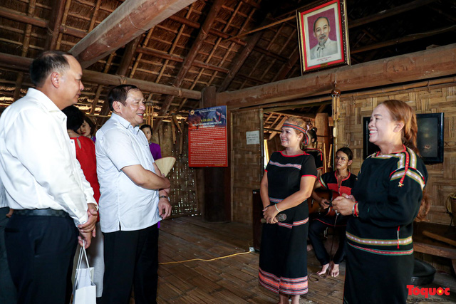 Thứ trưởng Nguyễn Văn Hùng thăm hỏi đồng bào dân tộc đang sinh sống tại Làng Văn hóa - Du lịch các dân tộc Việt Nam.