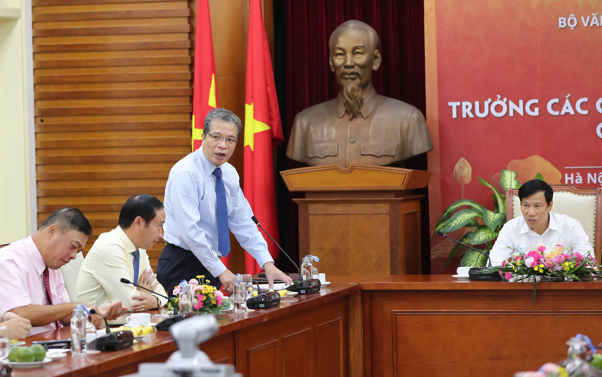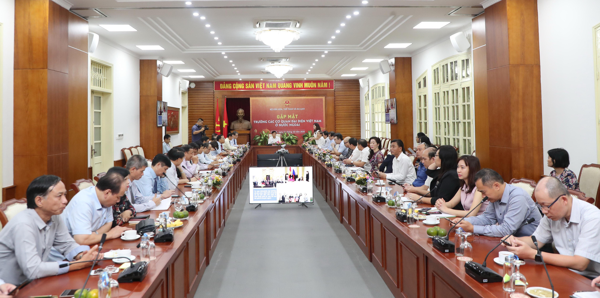Tại buổi gặp mặt, các thành viên trong đoàn Trưởng Cơ quan đại diện đã thảo luận sôi nổi và chia sẻ nhiều kinh nghiệm thực tiễn nhằm triển khai các hoạt động đối ngoại trên lĩnh vực văn hóa, thể thao và du lịch, hướng tới phát triển du lịch bền vững; tăng cường phát triển hơn nữa đối với thể thao, đặc biệt là bộ môn bóng đá; đồng thời còn khẳng định vai trò trụ cột của văn hóa trong việc giới thiệu rộng rãi hình ảnh đất nước, con người, tinh hoa văn hóa Việt Nam đến bạn bè quốc tế, đồng thời cũng đề xuất Bộ Văn hóa, Thể thao và Du lịch tiếp tục phối hợp, hỗ trợ thêm các đoàn nghệ thuật, âm nhạc, võ thuật sang giao lưu; không ngừng nâng cao chất lượng các sản phẩm văn hóa, đa dạng các loại hình quảng bá,…. Đặc biệt, một số đồng chí đề xuất Bộ Văn hóa, Thể thao và Du lịch thường xuyên chia sẻ thông tin, 2 bên cùng xây dựng kế hoạch hợp tác văn hóa dài hạn để các đồng chí Trưởng Cơ quan đại diện chủ động trong công tác phối hợp, nâng cao hiệu quả, chất lượng công việc.