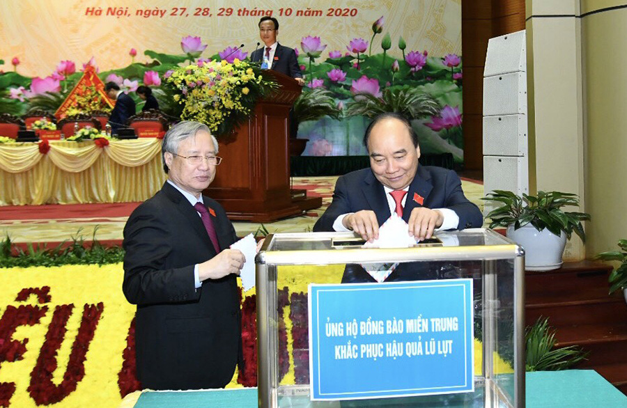 Tại Đại hội, toàn thể đại biểu tham dự đã tiến hành quyên góp, ủng hộ đồng bào các tỉnh miền Trung chịu ảnh hưởng mưa bão, lũ lụt thời gian qua (ảnh: VGP)