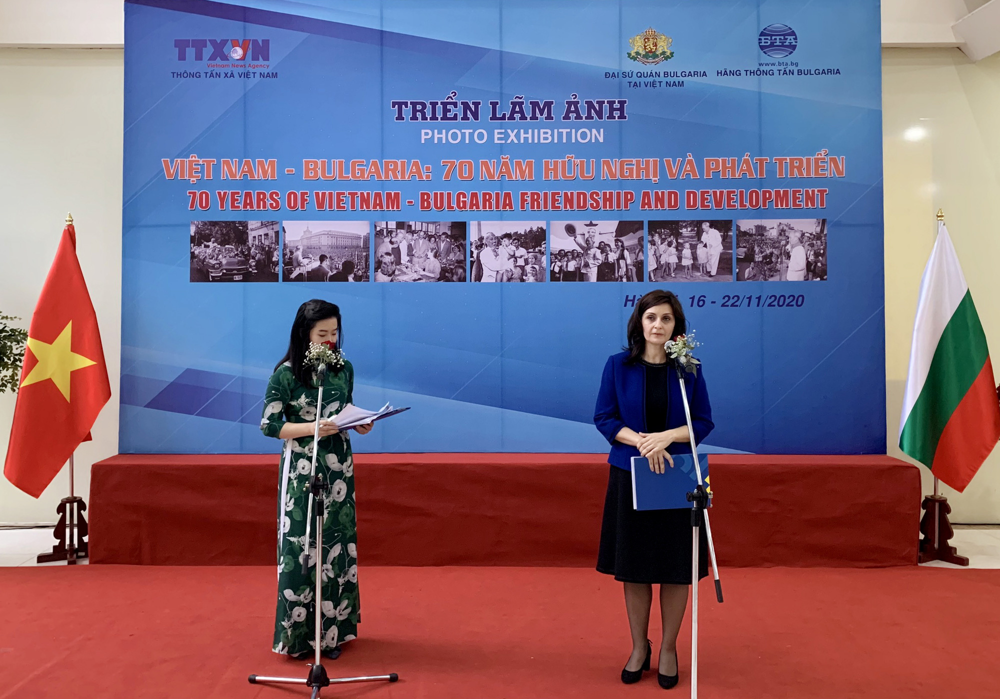 Ngày 16/11/2020, Lễ Khai mạc Triển lãm ảnh “Việt Nam-Bungari: 70 năm hữu nghị và phát triển” đã được tổ chức trọng thể tại Trung tâm Thông tấn Quốc gia, với sự tham dự của ông Nguyễn Đức Lợi-Tổng Giám đốc Thông tấn xã Việt Nam, ông Tô Anh Dũng-Thứ trưởng Bộ Ngoại giao, bà Nguyễn Thị Thanh Hương-Phó Tổng cục trưởng Tổng cục Du lịch, Chủ tịch Hội Hữu nghị Việt Nam-Bungari, bà Nguyễn Phương Hòa-Cục trưởng Cục Hợp tác quốc tế, Bộ Văn hóa, Thể thao và Du lịch; về phía khách quốc tế có bà Marinela Petkova-Đại sứ Bungari tại Việt Nam, Đại sứ và đại diện ngoại giao đoàn tại Việt Nam cùng đại diện các Bộ, Ban, ngành, các hãng thông tấn, báo chí.