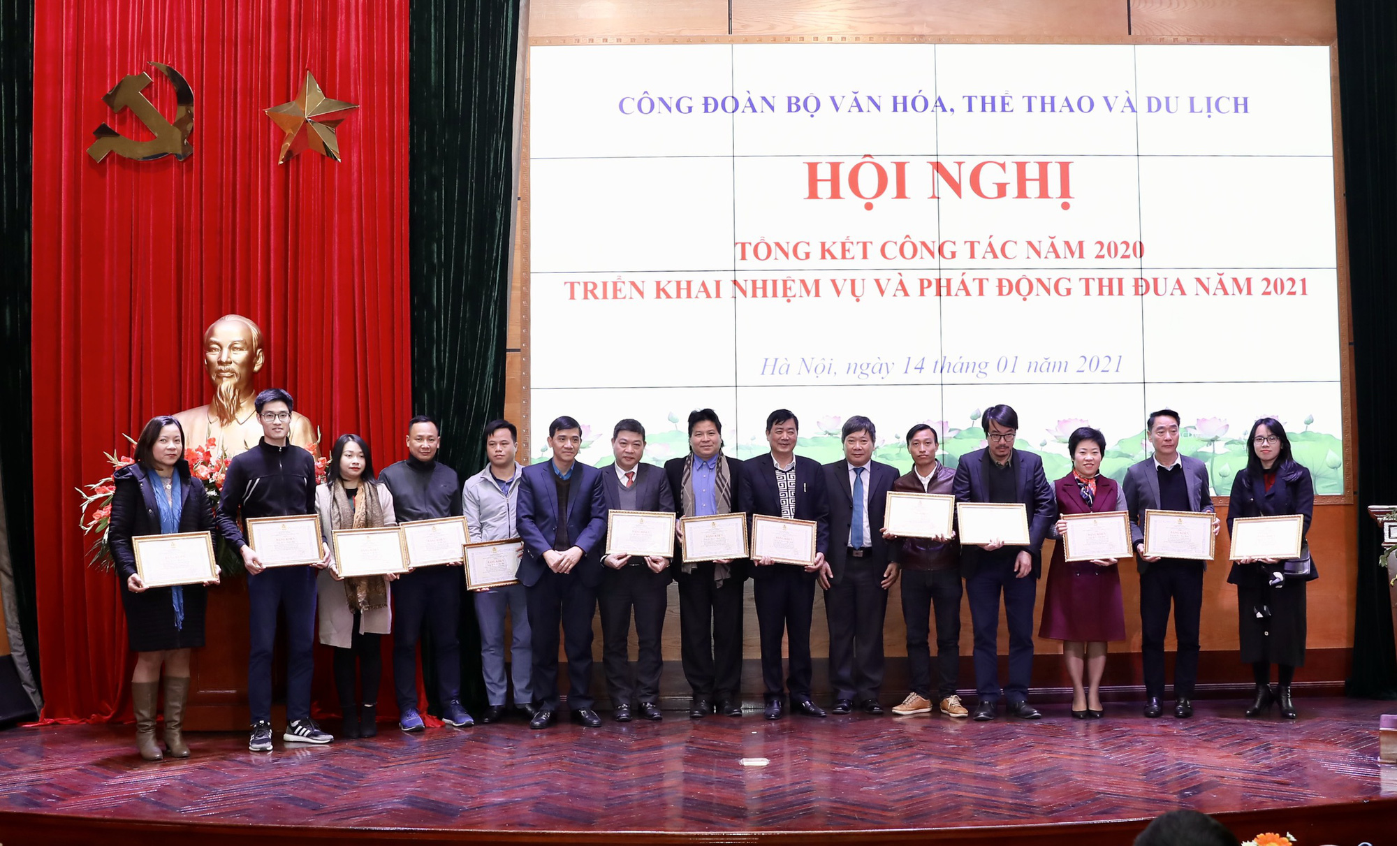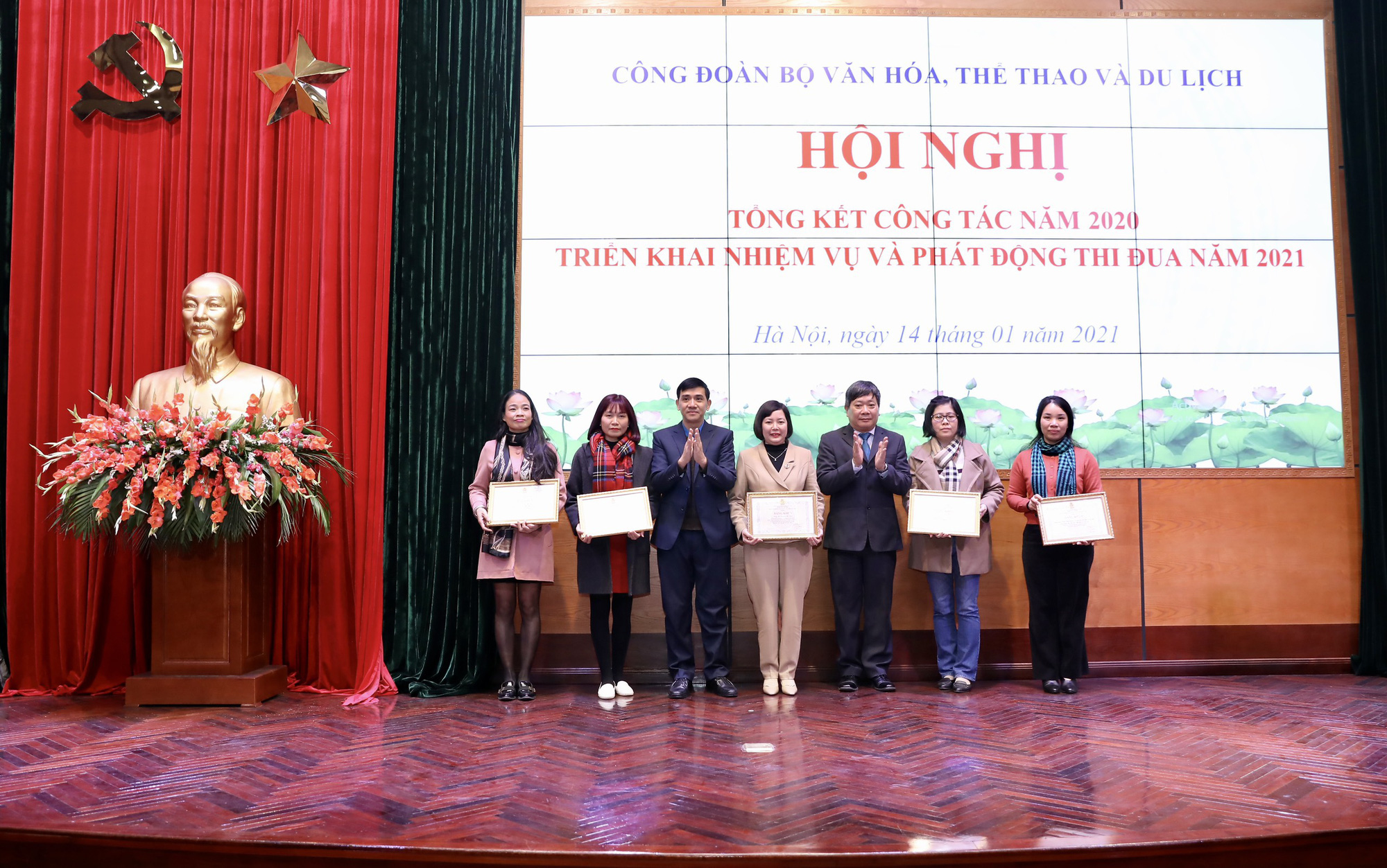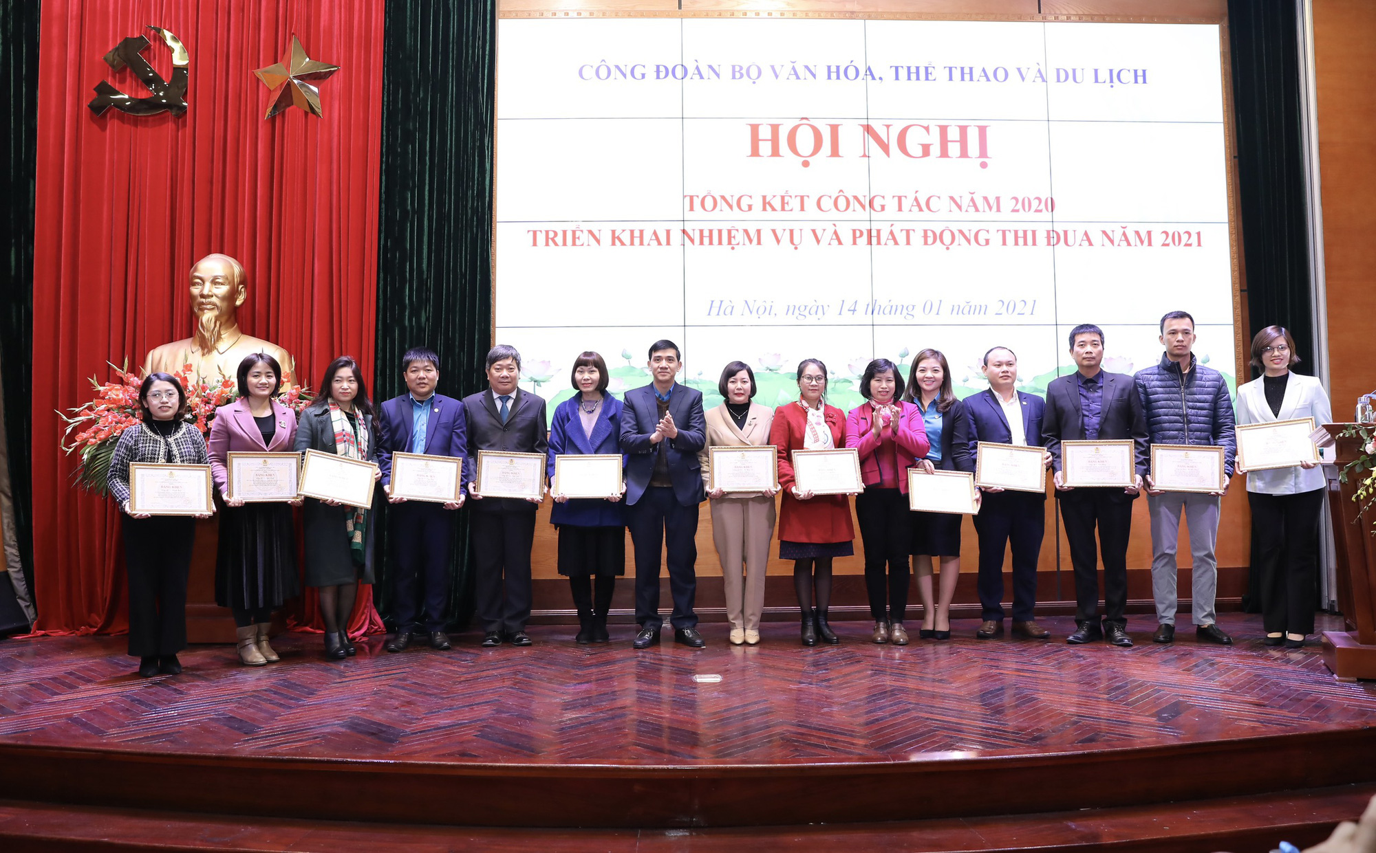 Cũng tại Hội nghị đã công bố và trao tặng các Quyết định khen thưởng năm 2020 cho các tập thể, cá nhân có thành tích xuất sắc trong các hoạt động công đoàn năm 2020. Tặng Bằng khen của Ban Chấp hành Công đoàn Viên chức Việt Nam cho 13 tập thể và 33 cá nhân thuộc Công đoàn Bộ VHTTDL. Tặng Bằng khen của BCH Công đoàn Viên chức Việt Nam cho 2 tập thể và 4 cá nhân thuộc Công đoàn Bộ VHTTDL đã có thành tích xuất sắc trong phong trào thi đua "Giỏi việc nước, đảm việc nhà" năm 2020.