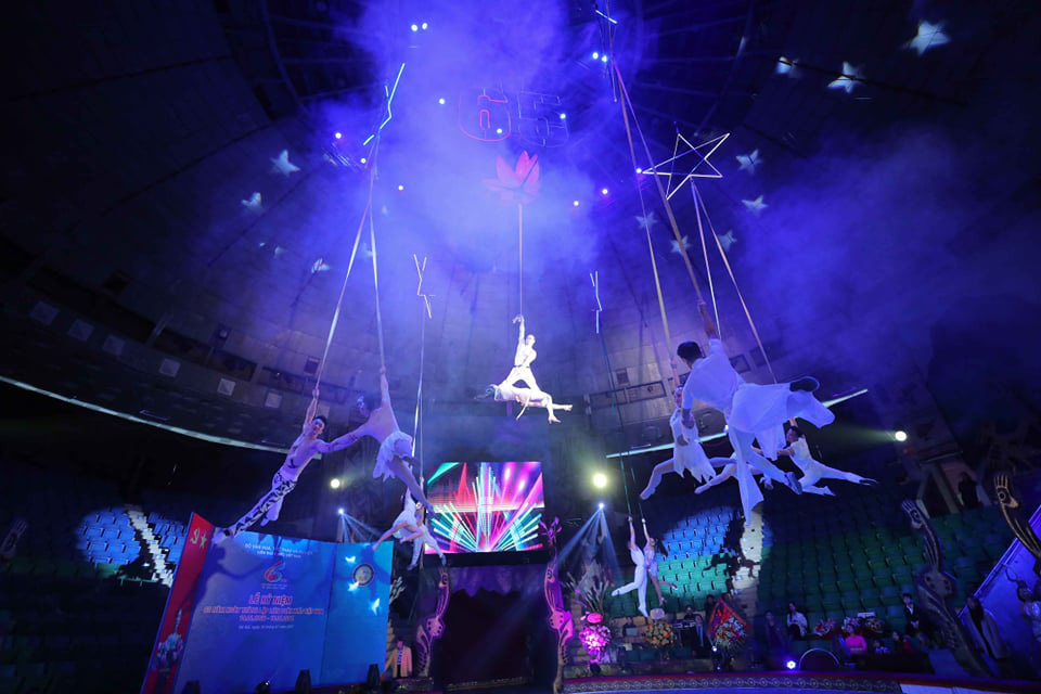 Tiết mục biểu diễn của các nghệ sĩ Liên đoàn Xiếc VN trong buổi lễ Kỷ niệm