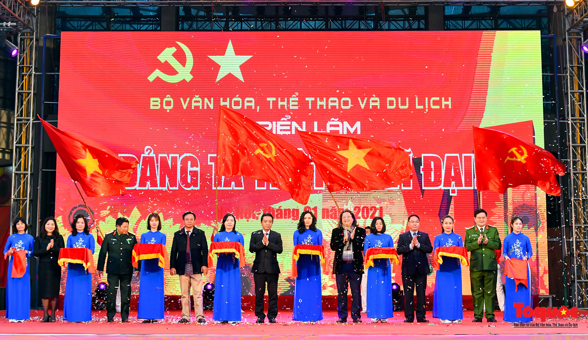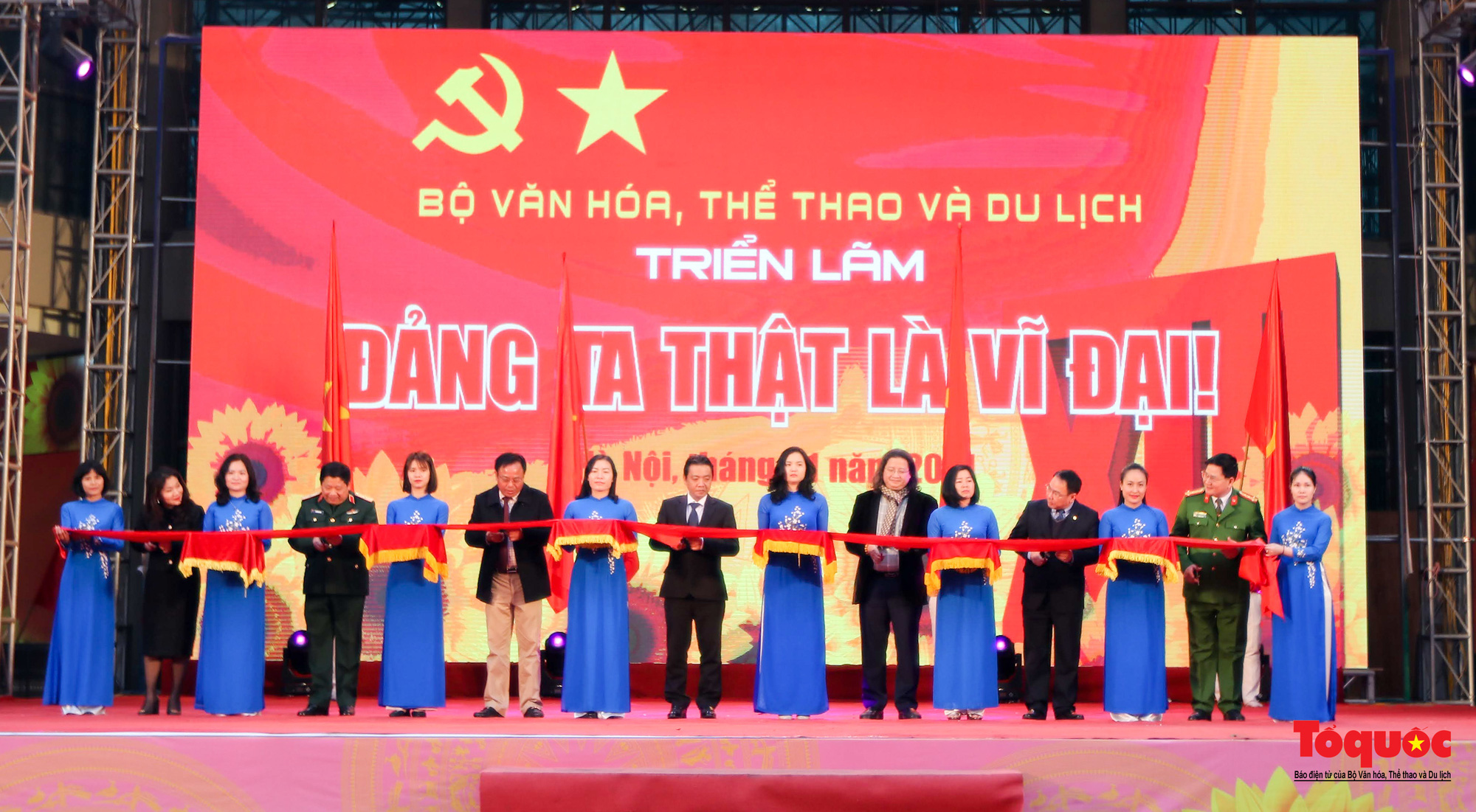 (TTCNTT) - Chiều 18/1 tại Hà Nội, triển lãm “Đảng ta thật là vĩ đại” do Bộ VHTTDL chỉ đạo tổ chức đã chính thức khai mạc. Diễn ra từ ngày 18 - 24/01/ 2021, triển lãm là sự kiện văn hóa, chính trị quan trọng, được tổ chức nhân kỷ niệm 91 năm ngày thành lập Đảng Cộng sản Việt Nam (3/2/1930 – 3/2/2021) và chào mừng Đại hội đại biểu toàn quốc lần thứ XIII của Đảng. Thứ trưởng Bộ VHTTDL Hoàng Đạo Cương tới dự và phát biểu tại Lễ khai mạc triển lãm.