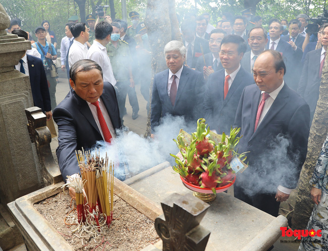 Trong giờ phút thiêng liêng, Chủ tịch nước Nguyễn Xuân Phúc, các vị lãnh đạo Đảng, Nhà nước… đã thành kính dâng hương, hoa, lễ vật tưởng nhớ, tri ân công đức của các Vua Hùng đã có công dựng nước, cầu cho xã tắc thịnh vượng, quốc thái dân an, bách gia trăm họ vạn đại trường tồn, đất nước ngày càng vững mạnh, hùng cường.