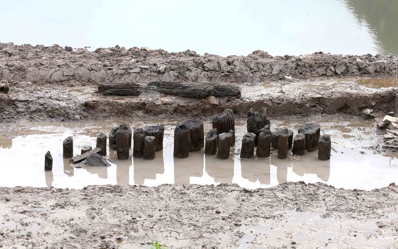 Dấu tích hàng cọc gia cố kiến trúc được các nhà khảo cổ học tìm thấy tại kinh đô Hoa Lư.