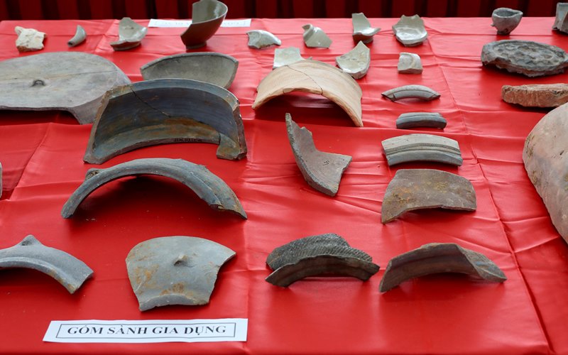 Di vật thu được là các loại gạch, ngói, gốm sứ, sành… gồm nhiều niên đại kéo dài từ thời Hán đến thời Đinh - Tiền Lê. Trong đó, gạch, ngói giai đoạn thế kỷ 7-9 có số lượng nhiều nhất.