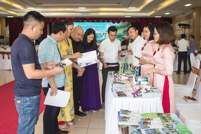 Các đại biểu tham quan các bàn giới thiệu về du lịch của các tỉnh trong vùng Việt Bắc.