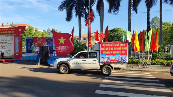 Tranh cổ động tấm lớn tuyên truyền cuộc bầu cử đại biểu Quốc hội khóa XV và đại biểu HĐND các cấp nhiệm kỳ 2021-2026