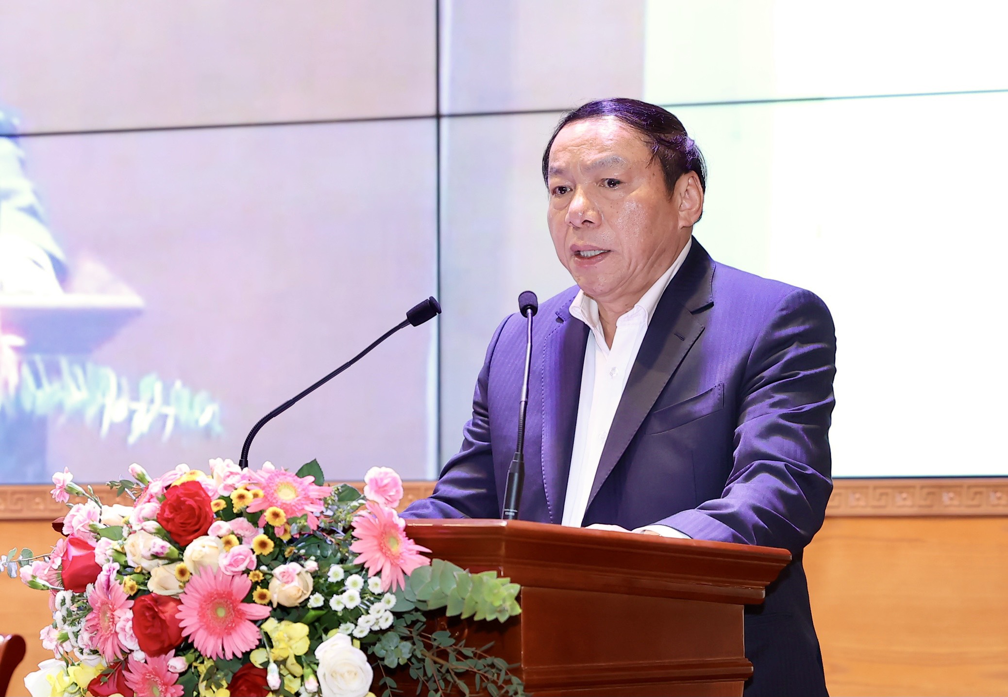 Về lĩnh vực văn hóa, Bộ trưởng cho rằng, xây dựng đời sống văn hóa cơ sở là cái gốc của vấn đề. Và văn hóa đó phải được hình thành từ gia đình, nhà trường, xã hội. Đơn vị để xây dựng là thôn, ấp, làng, bản, khu phố, cơ quan, đơn vị. Bộ VHTTDL có trách nhiệm đưa ra nội dung, tiêu chí, các đơn vị, các ngành, các cấp thực hiện.