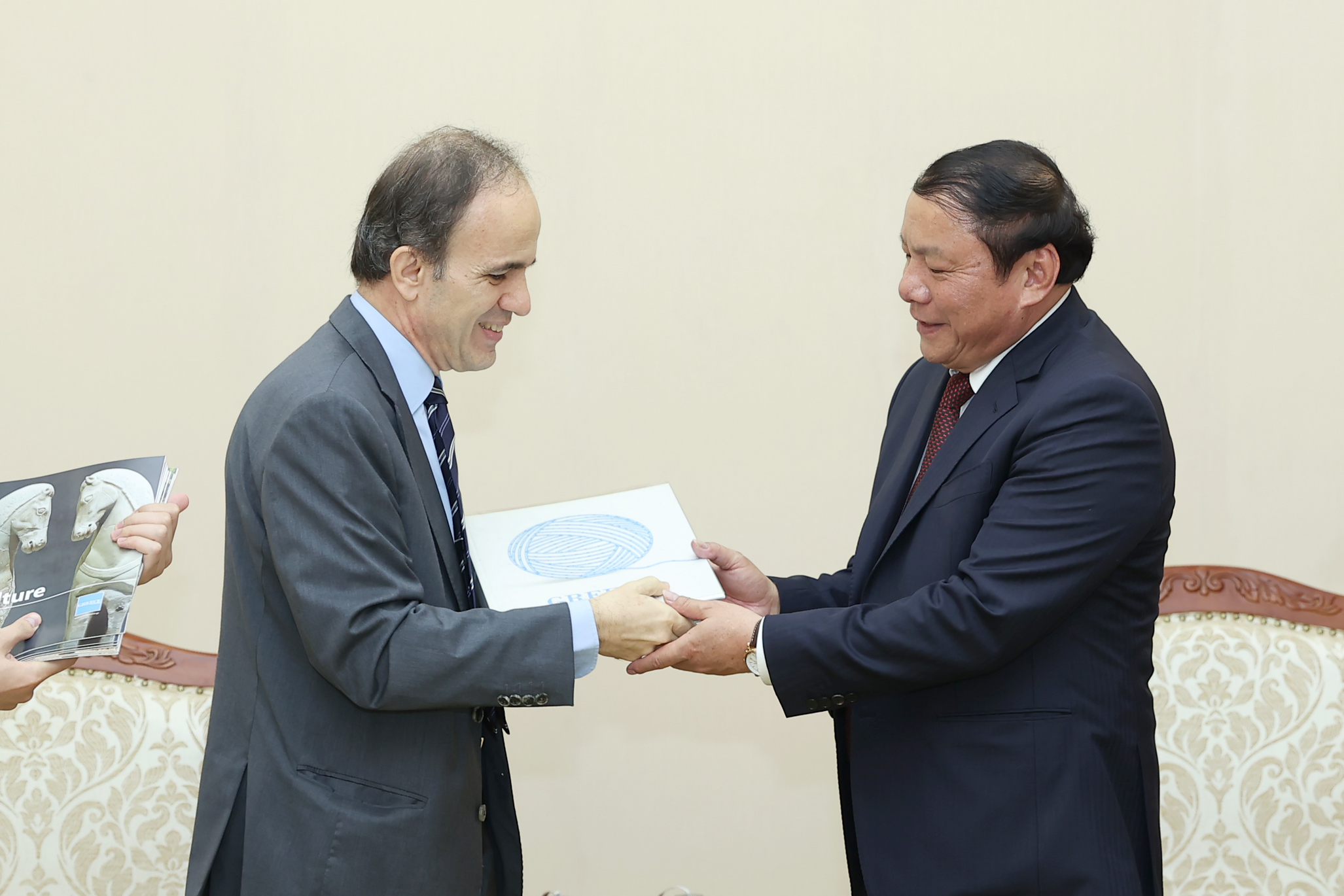 Bộ trưởng Nguyễn Văn Hùng tặng quà lưu niệm Đại sứ Hy Lạp Georgios Stilianopoulos