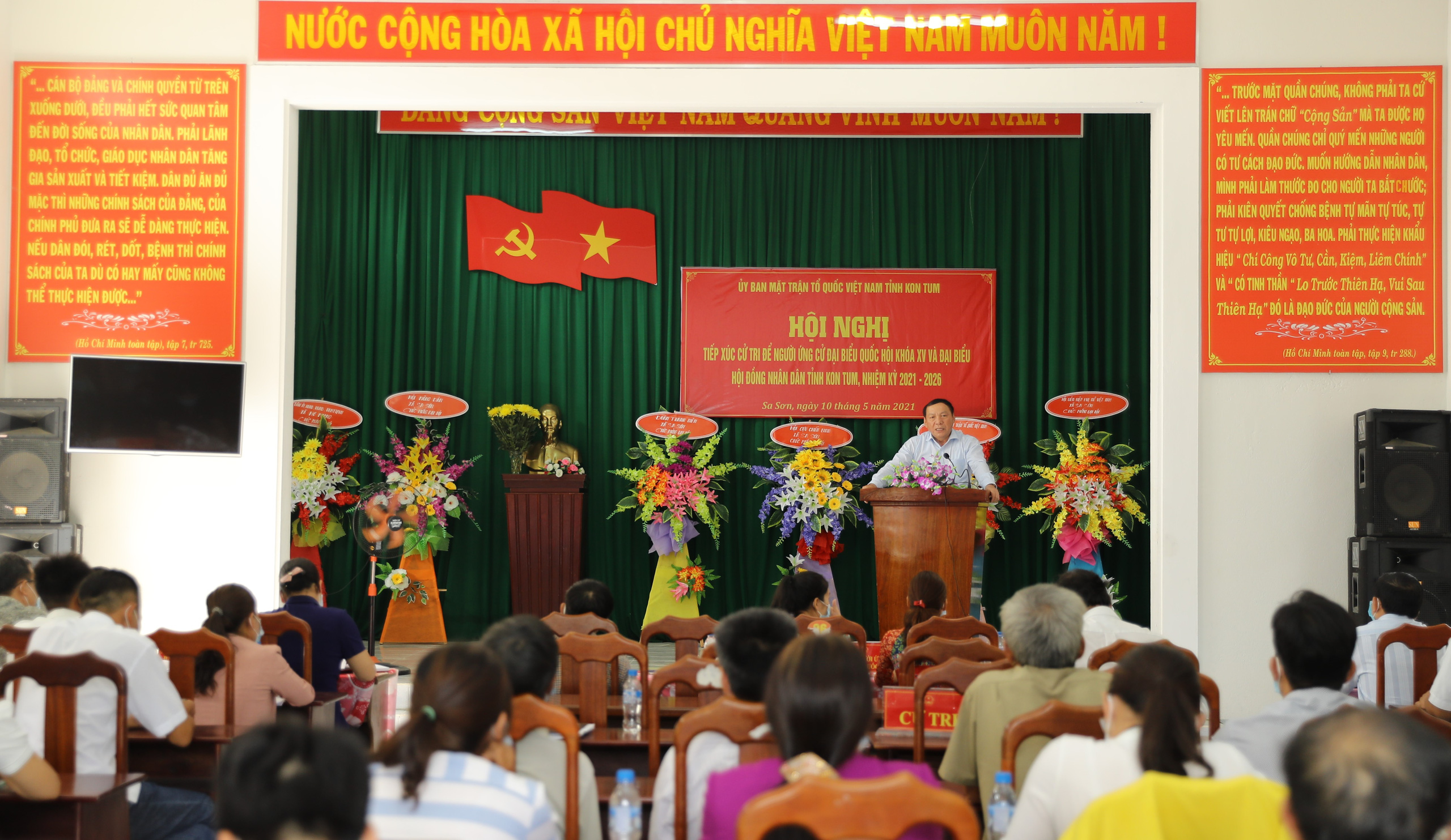 Mở đầu buổi tiếp xúc cử tri, ông Thao Hồng Sơn – Phó Chủ tịch Thường trực UBMTQ Việt Nam tỉnh Kon Tum đã trình bày tiểu sử các ứng viên ĐBQH khóa XV tại đơn vị bầu cử số 1 tỉnh Kon Tum và HĐND tỉnh Kon Tum nhiệm kỳ 2021-2025.