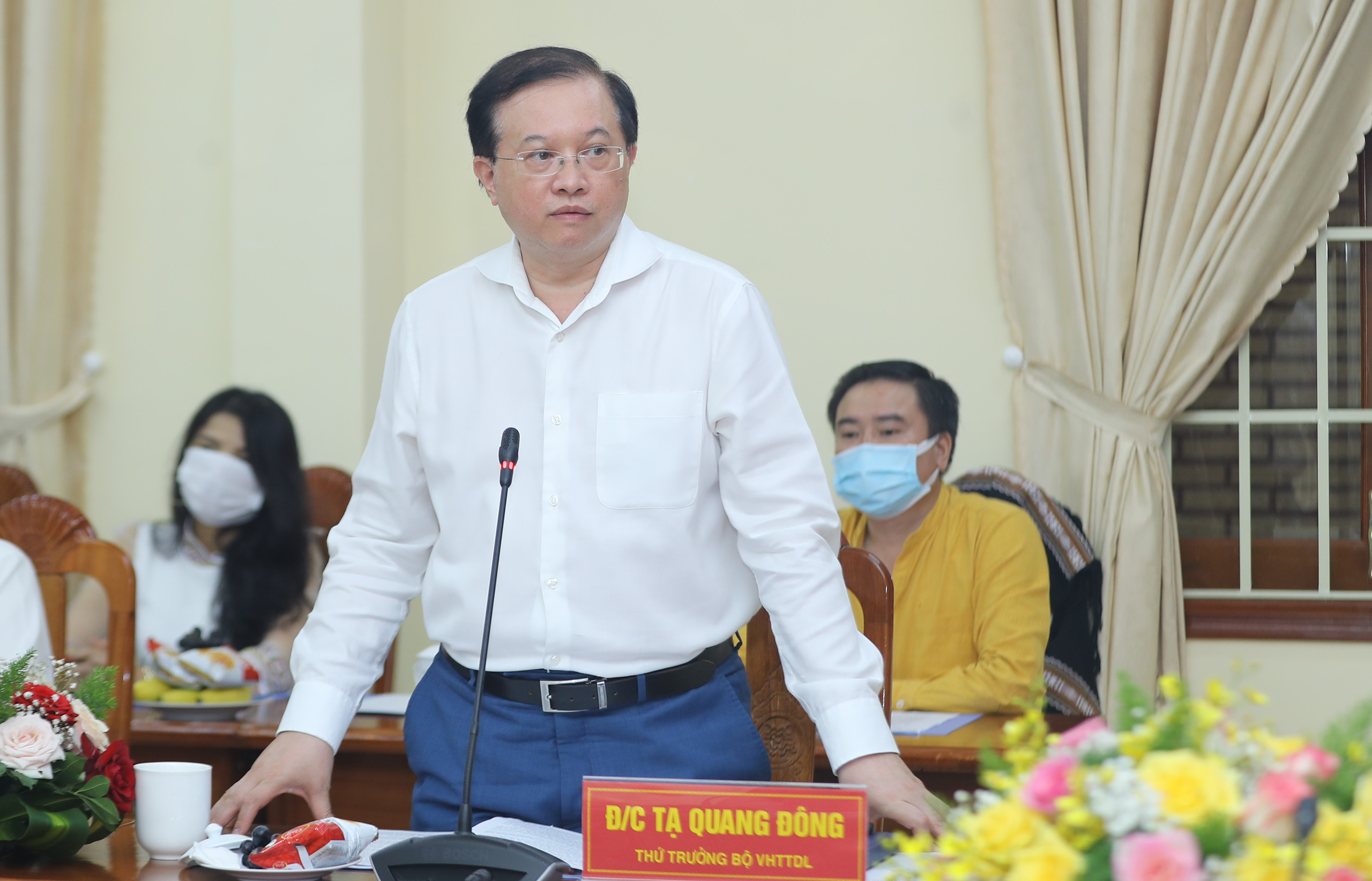 Thứ trưởng Tạ Quang Đông mong muốn tỉnh quan tâm nhiều hơn đến các nhà hát truyền thống, đời sống của các văn nghệ sĩ.