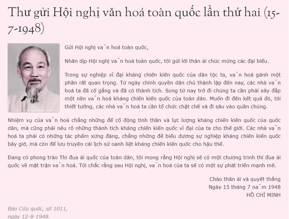 Thư Chủ tịch Hồ Chí Minh gửi Hội nghị văn hóa lần thứ 2