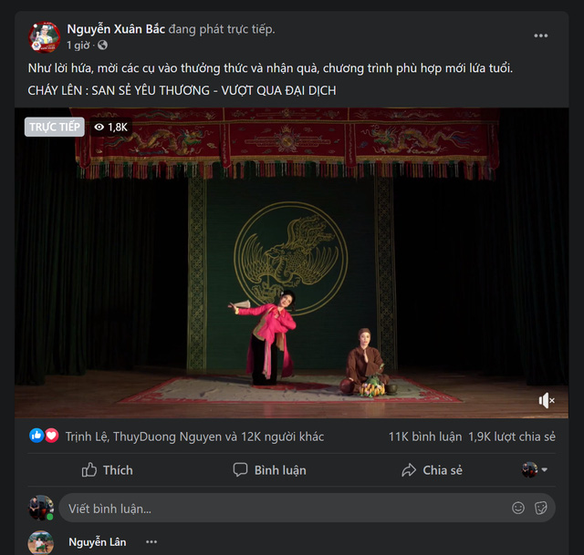 Bên cạnh đó chúng tôi cũng bắt đầu ghi hình và phát sóng chuỗi 12 chương trình biểu diễn, đối thoại với sự tham gia của các nghệ sĩ, đạo diễn, diễn viên trong lĩnh vực nghệ thuật ở trong nước và nước ngoài trên các kênh youtube của Cục nghệ thuật biểu diễn.