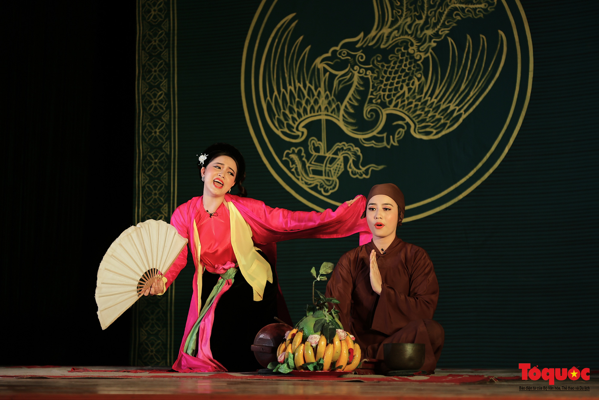Trích đoạn Thị Mầu lên chùa do nghệ sĩ Lệ Thu và Trang Nhung thể hiện tại điểm cầu Nhà hát Chèo Việt Nam