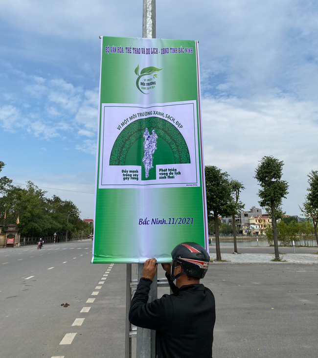 Tổ chức treo băng rôn, khẩu hiệu trên các tuyến phố chính và nhiều điểm di tích, lễ hội, du lịch trọng điểm tại tỉnh Bắc Ninh. Ảnh: Nhân vật cung cấp.