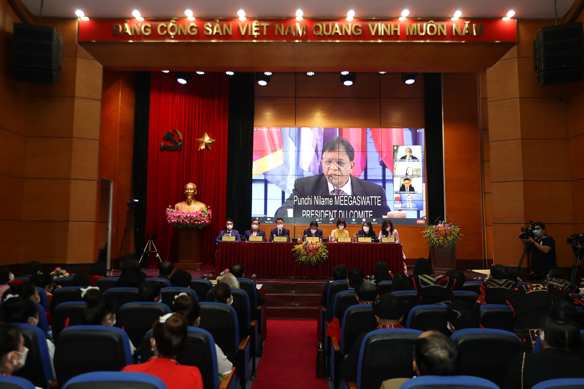 Thứ trưởng cũng gửi lời cảm ơn chân thành tới Tổng giám đốc UNESCO, Ngài Chủ tọa Hội nghị - Punchi Nilame Meegaswatte, Trưởng Ban thư ký Công ước 2003 - Mr Tim Cutis, Ban đánh giá Hồ sơ, các quốc gia là thành viên Ủy ban Liên chính phủ Công ước và các quý vị đại biểu có mặt tại Phiên họp trực tuyến này đã ủng hộ và ghi danh di sản Nghệ thuật Xòe Thái của Việt Nam vào Danh sách di sản văn hóa phi vật thể đại diện của nhân loại.